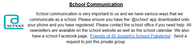 Please email the office if your children are taking a holiday during the school term. stjoesoffice@stjosephs.co.nz